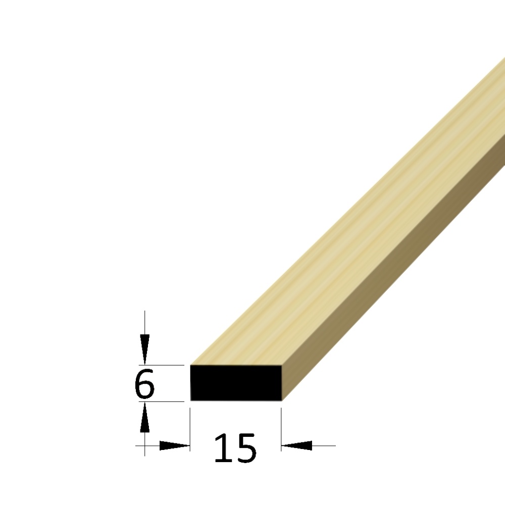 dřevěný ostrohranný hranolek, materiál borovice / smrk, rozměr 6 x 15 x 700 mm