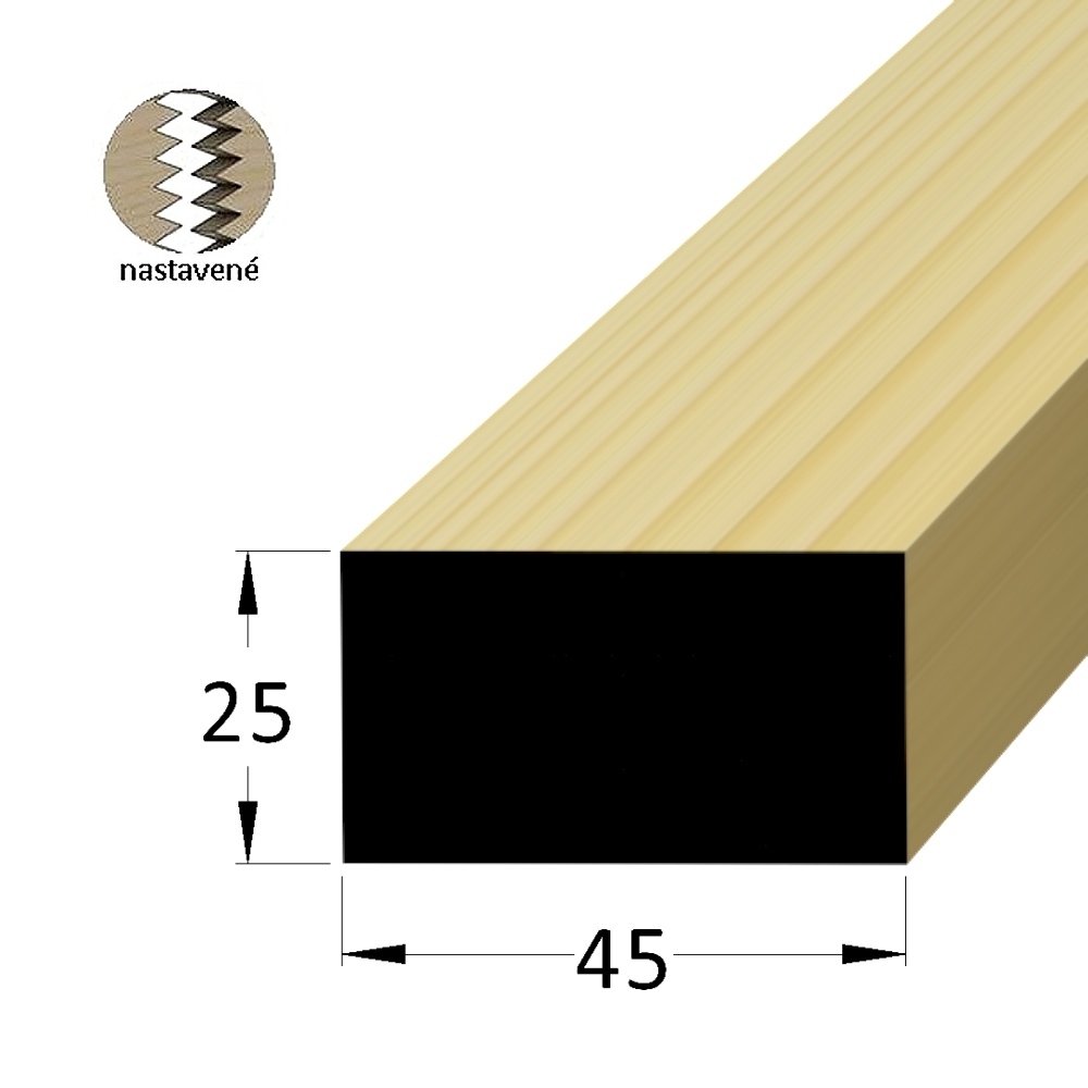 dřevěný ostrohranný hranolek, materiál smrk, rozměr 45 x 25 x 2000 mm